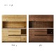 表面の木目は横方向につながるようになっています。上台は、奥行きが深い仕様となっているので、収納力も高いです。オープン部分には、調湿・消臭機能をもったモイスを備えています。天板には、耐久性、衛生面に優れた燕三条のステンレスを用いています。足元はカウンター上での作業がしやすいように特殊な台輪仕様となっています。