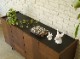 繊細なスチール脚と天板の黒色が前板の力強さを引き立たせ、高級感のあるサイドボードに仕上げました。