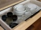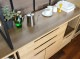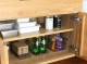 天板には水気や湿気に強いポリ合板を使用し、抽出内部には脱湿効果のある桐材を、炊飯器を設置するスペースには外に引き出せるスライドレールを仕込んでいます。