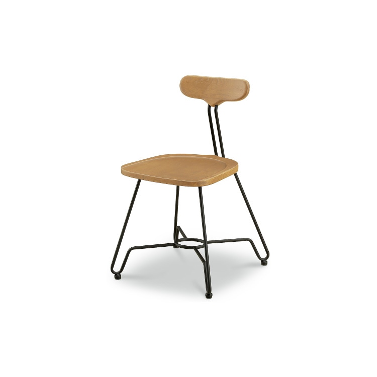 ニレ材にアイアン脚を使用したダイニングチェア。 おしゃれなカフェになるようなインテリアをイメージしました。