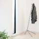 強く床面から伸びた1本のロッドの先端付近にV字型に曲げたパーツがフックとなり、合計3つのラインにハンギングが可能です。 前後左右にモノや洋服をかけることができ、強靭な素材は安定感に優れ、そのまま直に洋服をかけてもよし、お手持ちのハンガーを使ってぶら下げるようにしてお使いいただくこともできます。