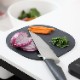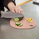 くるくる回しながら複数の具材をカットできる丸いまな板と、フライパンやお鍋に移しやすい四角いまな板の良いとこ取りの形。取り回しの良い形状です。
