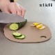nikii カッティングボードは、回しながら複数の具材をカットできる丸型と、お鍋に移しやすい四角まな板の良いとこ取りの形状。便利な機能をたくさん詰め込んだ、薄型ミニサイズのプラスチック製まな板です。