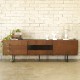 繊細なスチール脚と天板の黒色が前板の力強さを引き立たせ、高級感のあるローボードに仕上げました。