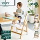 シンプルなパーツ構成と工具不要で組み立てることができる、イッピーは箱を開けてすぐにお使いいただけます。 座面と足のせ板の取り付けも板を溝に差し込むだけのシンプル設計で、お食事後のお手入れしやすくいつも清潔に。 お掃除や使用しない時には、折りたたんで自立させコンパクトに収納することができるのも嬉しいポイントです。 ハイグレードのオーク材は豊かで美しい表情。落ち着いたトーンやナチュラルテイストのインテリアに馴染みます。