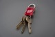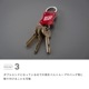 ダブルエンドになっていますので両側から鍵の着脱が可能です。リング部分を引くと鍵を通す穴が出てくる仕様。引いた状態で90°回すと固定できるので鍵を通してから元に戻します。