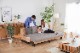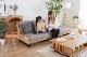壁際にぴったり配置することができ、後ろのスペースを空けずにレイアウトができます。スライドさせて伸縮するため、急な来客時にはササっと縮めて空間を広く演出します。 昼寝をしたり、足をのばしてリラックスしたり、好きな体勢でゴロゴロと過ごせます。1台で多様な使い方が可能です。大人もゆったり寝れるようにマット奥行は102cm。