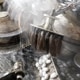 製糸(繭から糸にする)の時、繊維がほぐれやすくするために繭を煮立てます。