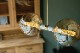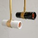 陶器製のダブルソケットに真鍮のパーツをあわせ、シンメトリーに取り付けた電球がデザインの一部として楽しめるランプ。