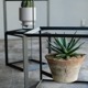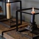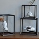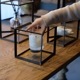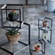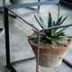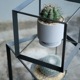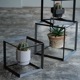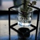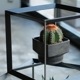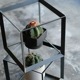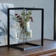 無骨なアイアンのキューブの中で、植物が浮いているように見せるディスプレイボックス。