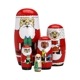 世界中で祝われるクリスマスをイメージし、5大陸のサンタクロースが描かれたマトリョーシカ。ヨーロッパ大陸、アメリカ大陸、アフリカ大陸、アジア大陸、オーストラリア大陸、各地域にまつわるプレゼントを抱えています。
