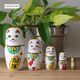 商売繁盛や千客万来などの願いを込めて飾られる縁起物である、招き猫のマトリョーシカ。