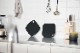 直径3cmの大きめの穴が空いているので、様々なサイズのフックに対応します。 立てかけたり、吊るしたり、キッチンの目に留まる場所にあっても、インテリアになじむ形状と落ち着いた色です。