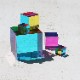CMYcubes The Original CMY Cube 30mmは、CMY(シアン マゼンタ イエロー)のフィルムが光を通し、角度により重なることで美しい色を生み出すアートオブジェ。