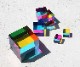 The Original CMY Cubeのサイズ展開は95mm、50mm、30mmの3種類。サイズ違いで積み重ねると、重なった箇所が思いがけない色を生み出します。