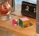 アクリルキューブが色面となっているシンプルな構成ですが、置くだけで個性的な存在感のインテリアオブジェに。