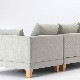 例えば、片肘ソファ2台と木製脚2セットを組み合わせると、背部パーツを入れ替えることで両肘タイプやシェーズロングタイプなど自由なレイアウトが可能です。