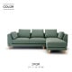 例えば、片肘ソファ2台と木製脚2セットを組み合わせると、背部パーツを入れ替えることで両肘タイプやシェーズロングタイプなど自由なレイアウトが可能です。