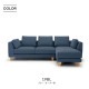 OLIBIAソファの特徴的な点は、自由なレイアウトが可能であることです。片肘ソファとオットマンを組み合わせることでシェーズロングスタイルに早変わりすること。