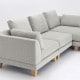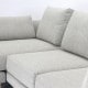 例えば、片肘ソファ2台と木製脚2セットを組み合わせると、背部パーツを入れ替えることで両肘タイプやシェーズロングタイプなど自由なレイアウトが可能です。