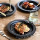 リムプレートのようなデザインで、おしゃれにテーブルコーディネートできます。縁付きの丸いお皿のような鉄製耐熱プレートです。