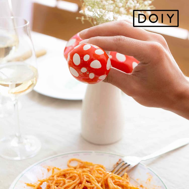 独創的なデザインが特徴のスペイン発のブランド、DOIY(ドーイ)のきのこモチーフの塩こしょう入れセット。置くだけでとってもかわいいオブジェのよう。DOIYのプロダクトは、まるでおとぎ話のように見るものを楽しませ、時には笑顔に、時には驚きを与えてくれるものばかりです。