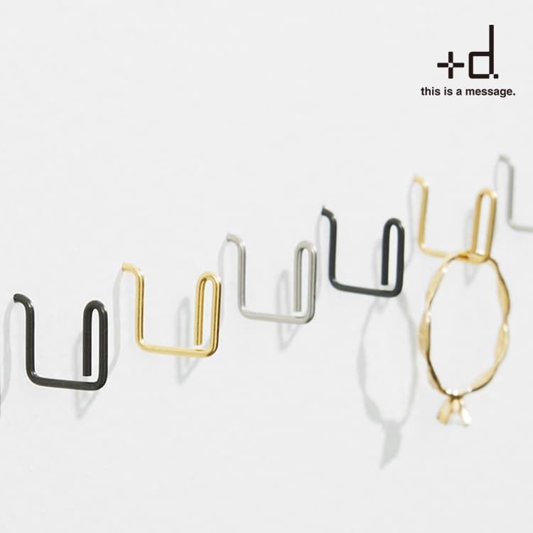 壁に刺しても主張しすぎない幅0.8mmのピン。一本の線を曲げるという発想から生まれたフォルムは、壁に「掛ける」という機能をもたらします。アクセサリー、