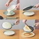 10. 付属のスパチュラでクレープをはがし、キッチンペーパーを敷いた皿にとる。キッチンペーパー、クレープの順に焼けたクレープを重ねてくっつかないようにする。