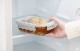 4面ロックのシリコン蓋。蓋には軽い力で閉められるロックを4面に採用し機密性を高めています。煮汁などの少量の水分も安心して保存できるードコンテナです。