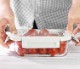 オーブン対応。耐熱温度約600℃でオーブン料理もOK。熱々のグラタンやラザニアをこのガラス容器で調理して、冷めたらそのまま冷蔵保存、冷凍保存できます。洗い物や移し替えの手間も省けてとっても便利。フタはオーブン調理時は外してください。