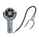 側面のフックや取っ手のくぼみには置き・吊 下げのシーンで安定感を出すひと工夫。
