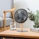 リアルウッドの支柱がアクセント。左右自動首振りと上下手動調節で、風向きの自由度大