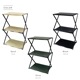 テーブルと3 段ラックに組立可能なフォールディング テーブルラック コンロッド。 アウトドアに限らずガーデンやインテリアにも馴染むスタイリッシュなデザインで 多彩な使い方ができます。コンパクトに折りたたんで持ち運びができます。
