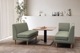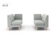 片肘ソファ、ベンチの2アイテムだけのラインナップでありながら、アイテムの組合せ方とアームの付替により多様なレイアウトが可能。