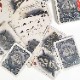 よく見るとカードには薄茶色のシミのようなものが。古書や古い紙が経年劣化したように見せるため、あえてこのように細やかなアンティーク風デザインを施しています。
