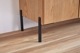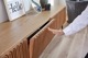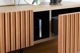 オーク無垢材を前面に贅沢に使用。職人が1本1本、えぐり面形の磨きをかけることで陰影が強調され、自然光/照明の当たり方によっても表情を変えます。