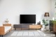 テレビを置いてご覧いただく方向けに、テレビに付属しているバンドを固定するためのネジを付属しています。ローボード背面に固定用の金具穴を設けています。(お持ちのテレビが対応しているかは各メーカーにお問合せ下さい。)