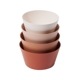 少しずつサイズが異なり、入れ子式に重なる4枚セット。 プレート、ボウルでお選びいただけます。 ダイニングでは4人分、収納スペースは1つ分。毎日の食事はもちろん、ホームパーティー用のストックとしても。 色の違いによりサイズが一目でわかり、収納時の重ね順も迷いません。電子レンジ・食洗機もOK。
