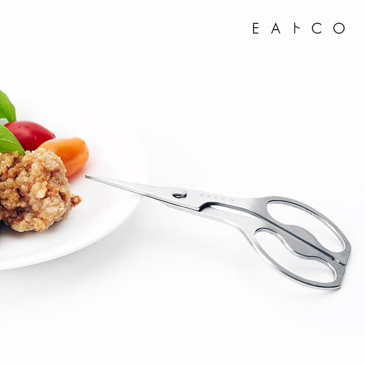 EAトCO カトラリー ハサミは、食事のアシストだけでなく、大皿料理の切り分けや薬味を切る際、アウトドアでの焼肉、バーベキュー、包丁代わりにもお使いください。食卓に置いても見栄えのする美しいデザインの食卓用キッチンハサミです。