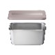本体のみ食洗機対応(フタは食洗機不可)。スタッキング収納可能で、使わない時も省スペース、場所を取りません。角のツメでフタを開けやすい構造になっています。