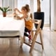 シンプルなパーツ構成と工具不要で組み立てることができる、イッピーは箱を開けてすぐにお使いいただけます。 座面と足のせ板の取り付けも板を溝に差し込むだけのシンプル設計で、お食事後のお手入れしやすくいつも清潔に。 お掃除や使用しない時には、折りたたんで自立させコンパクトに収納することができるのも嬉しいポイントです。 ハイグレードのオーク材は豊かで美しい表情。落ち着いたトーンやナチュラルテイストのインテリアに馴染みます。