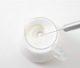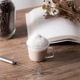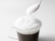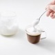 ミルクフォーマー本体をミルクに入れスイッチをオンにしてから、最短約20秒ほどゆっくり全体を混ぜると、きめ細やかなミルク泡ができ上ります。泡をスプーンですくい、準備しておいたお好みのドリンクにのせてお召し上がりください。