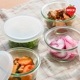 シリコンキャップは液体が漏れにくいので、水分が多めの食材にも安心。スタッキング可能なので、使わない時もすっきり収納できます。