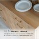 フルオープンレールを採用した引き出しは、奥に収納した食器や調理器具もスムーズに取り出せ、使い勝手抜群。細部までこだわった設計が、日々のちょっとした動作を快適にサポートします。さらにアンティークゴールドの取っ手をアクセントに取り入れ、木目の温かみと調和することで、置くだけで空間を格上げする上質な存在感を放ちます。