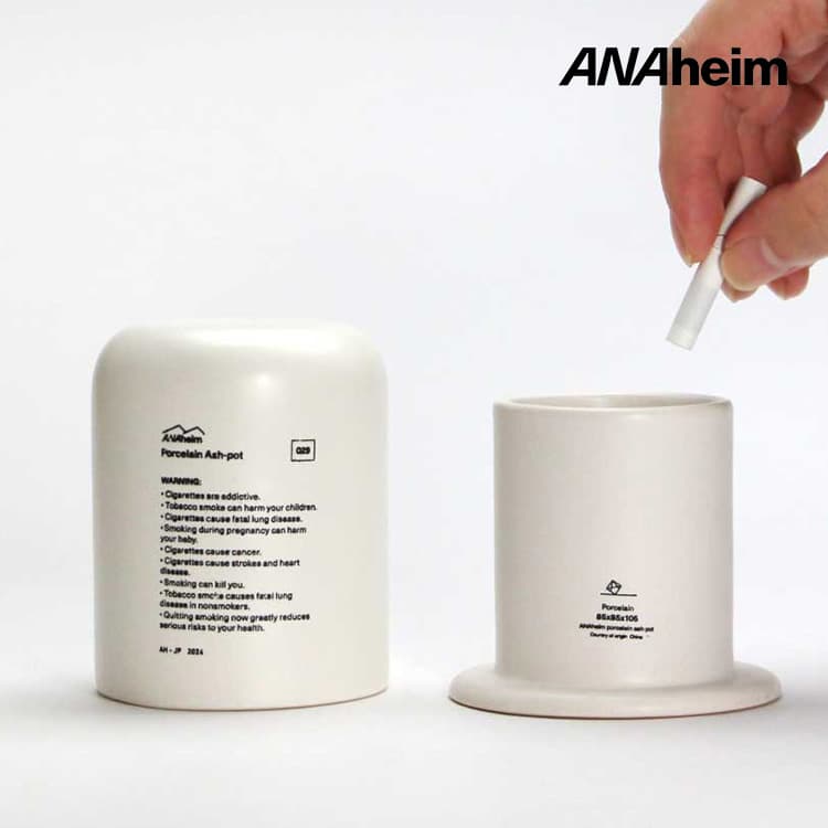 ANAheim Porcelain Ash-Potは、加熱式タバコ用灰皿や電子タバコ灰皿としての用途にとどまらず、ペンスタンド・お香スタンド・綿棒入れ・コスメ収納など、様々な生活シーンにフィットするフタ付磁器アイテムです。寝室・リビング・バスルームなど、様々なシーンで活躍します。