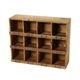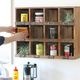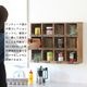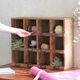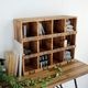 アンティーク風の木製シェルフで見せる収納を。壁掛けOKな12マスのディスプレイ棚。