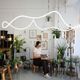 付属ワイヤーパーツで天井に吊り下げて使用できます。曲線・波状・高低差のあるレイアウトを自在にデザインできます。