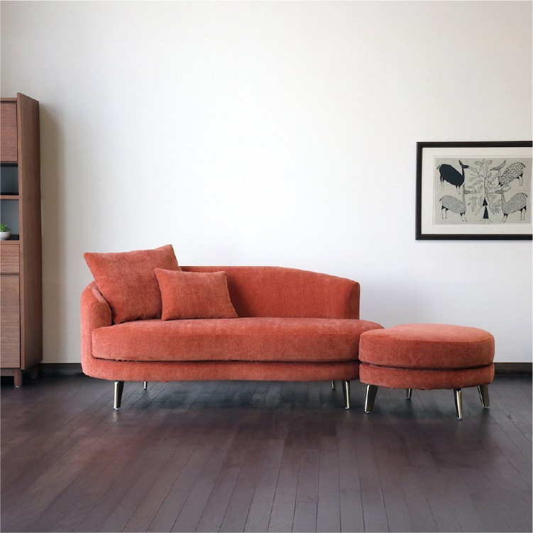 3人掛け/2人掛けカウチ/1人掛け回転ソファのサイズが選べ、半月型のスツールはソファ座面のカーブに合わせる事が